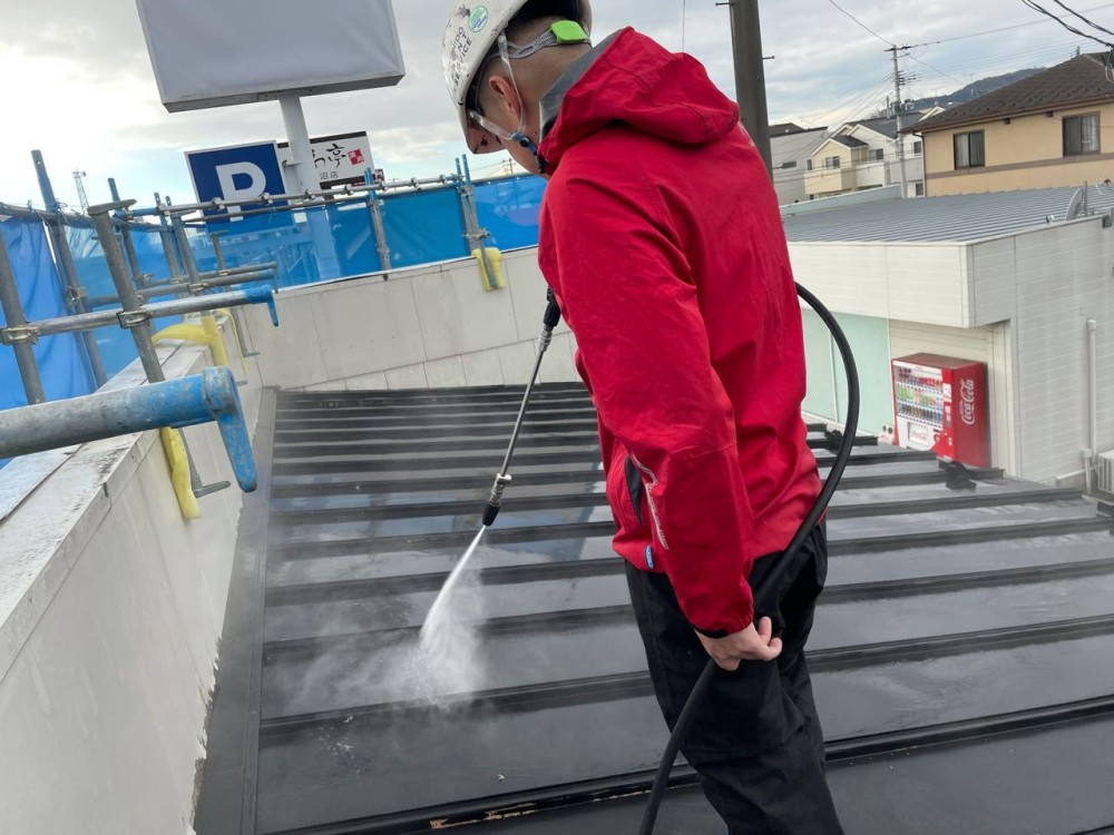 屋根は下塗りに錆止め塗料を使用します。