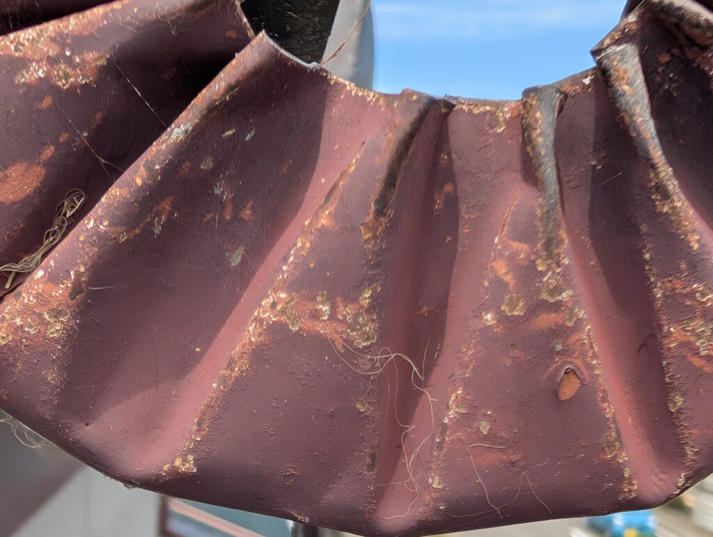 こちらは新築時からの金属製雨樋で、年数も経っていたため、サビや劣化が進んでいました。