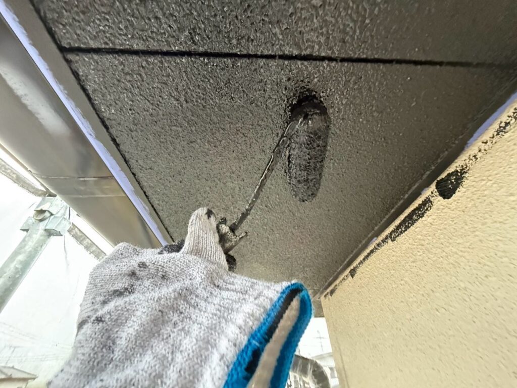 軒天は白系から黒系に塗り替えます。