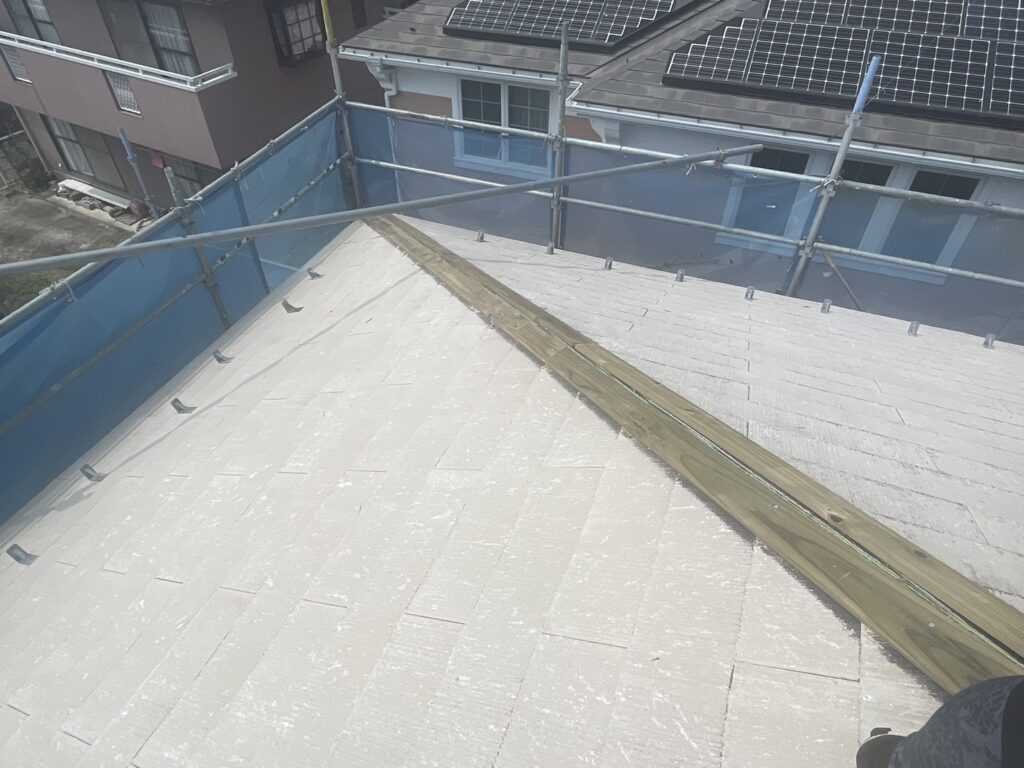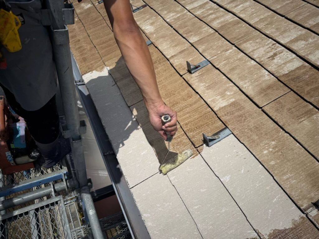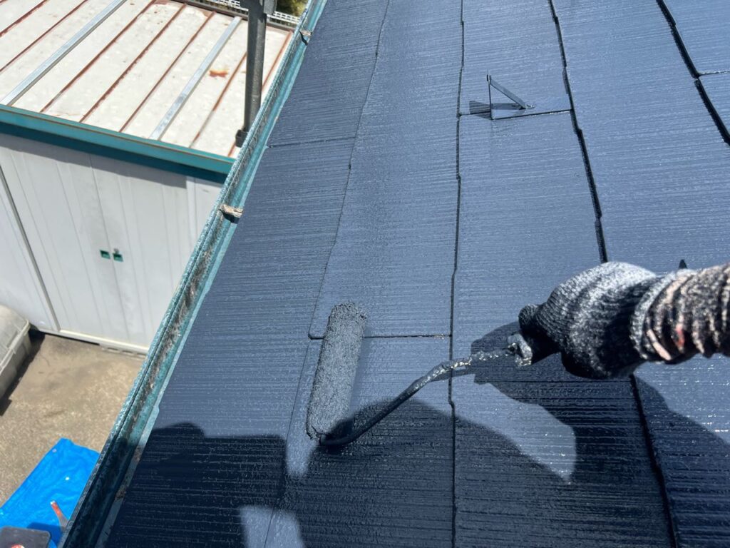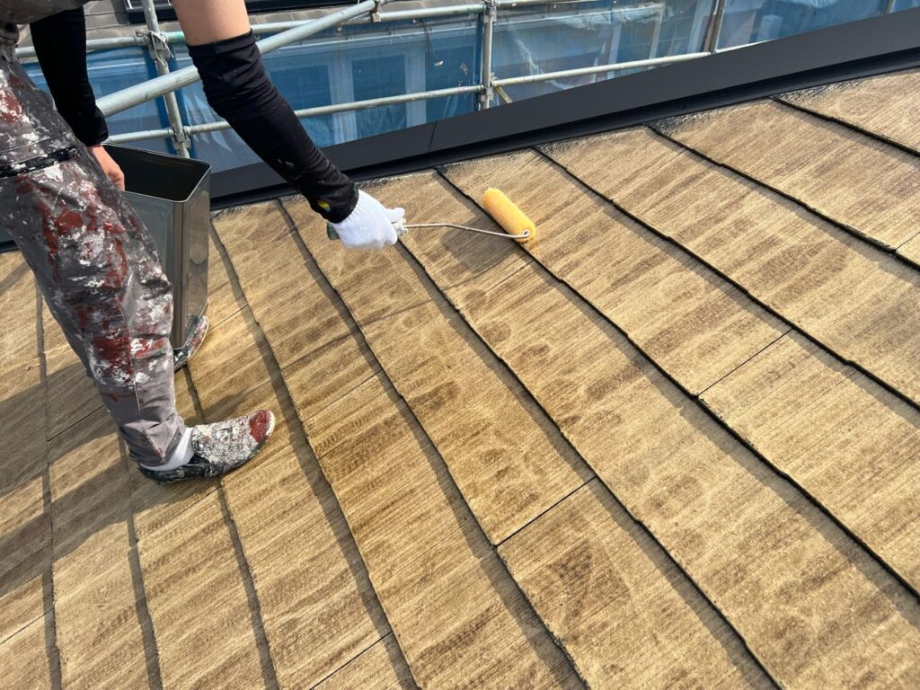 そのあと下塗りを重ね、屋根材の吸い込みを抑えながら密着性を高めます。