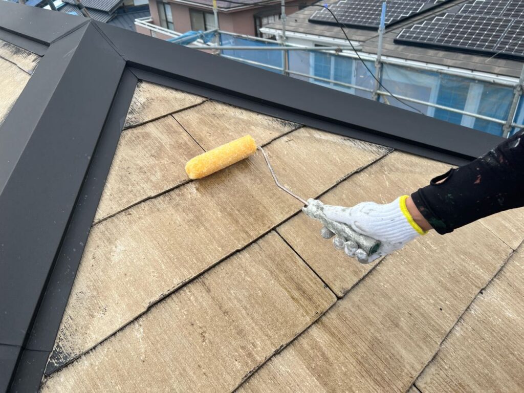 そのあと下塗りを重ね、屋根材の吸い込みを抑えながら密着性を高めます。