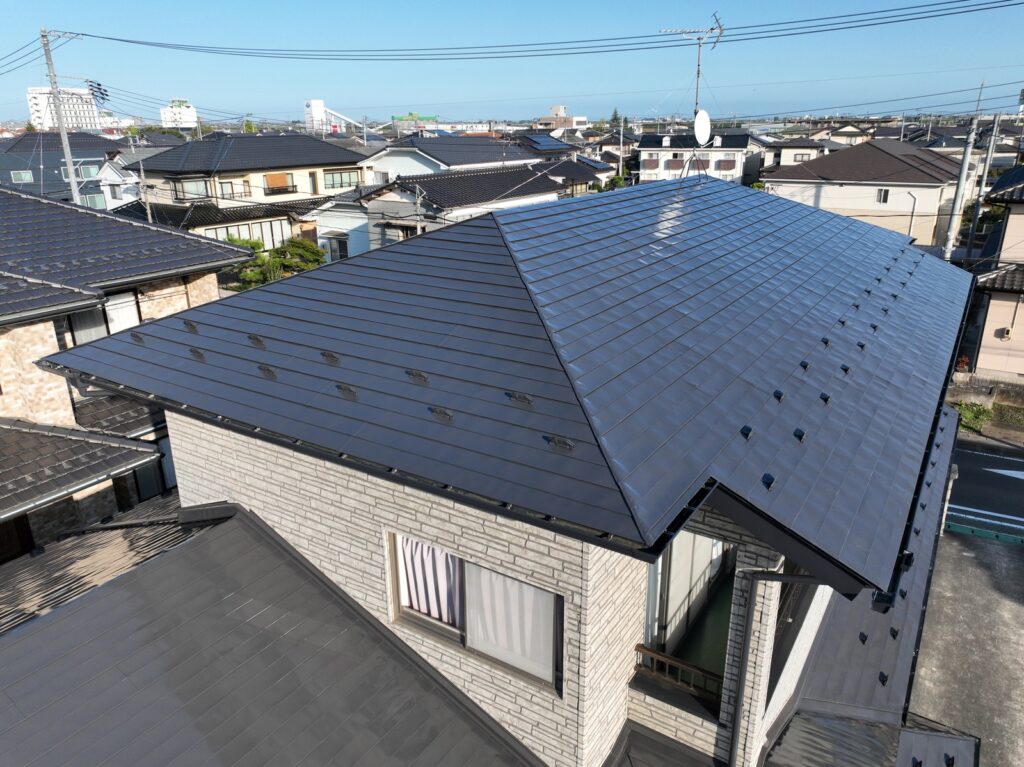 名取市植松のS様邸で、ガルバリウム鋼板屋根の「無機塗装工事」を行いました😊