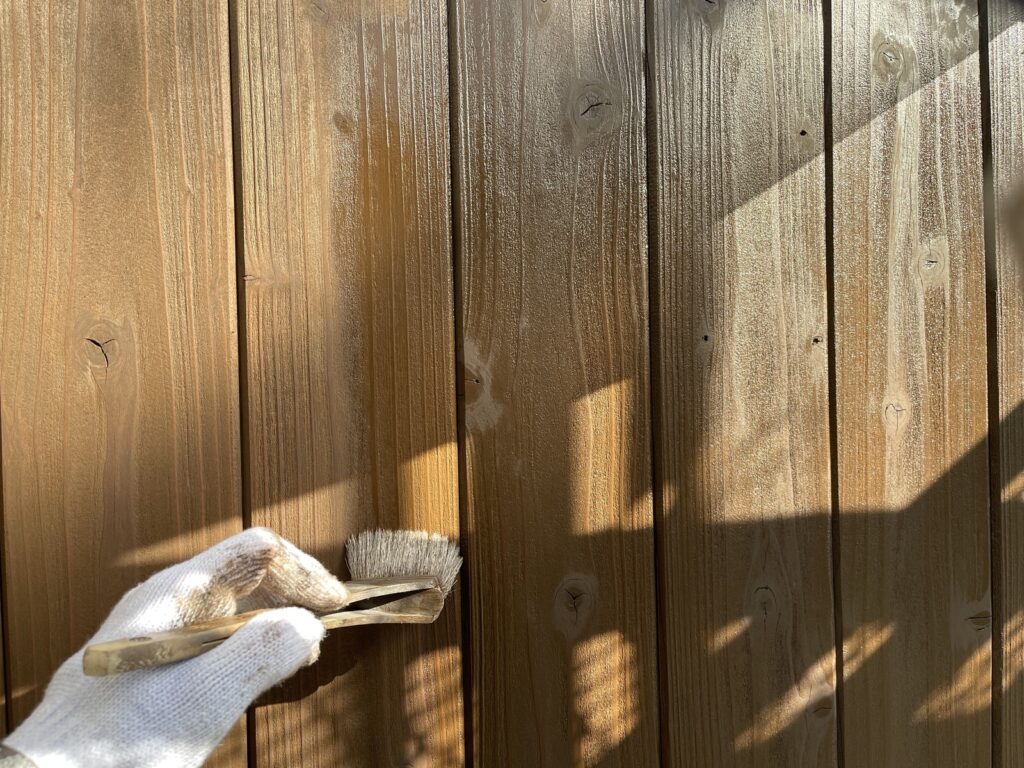 今回はこちらを2回塗りし、木の外壁らしいやさしい表情を残したまま、きれいに仕上げました!