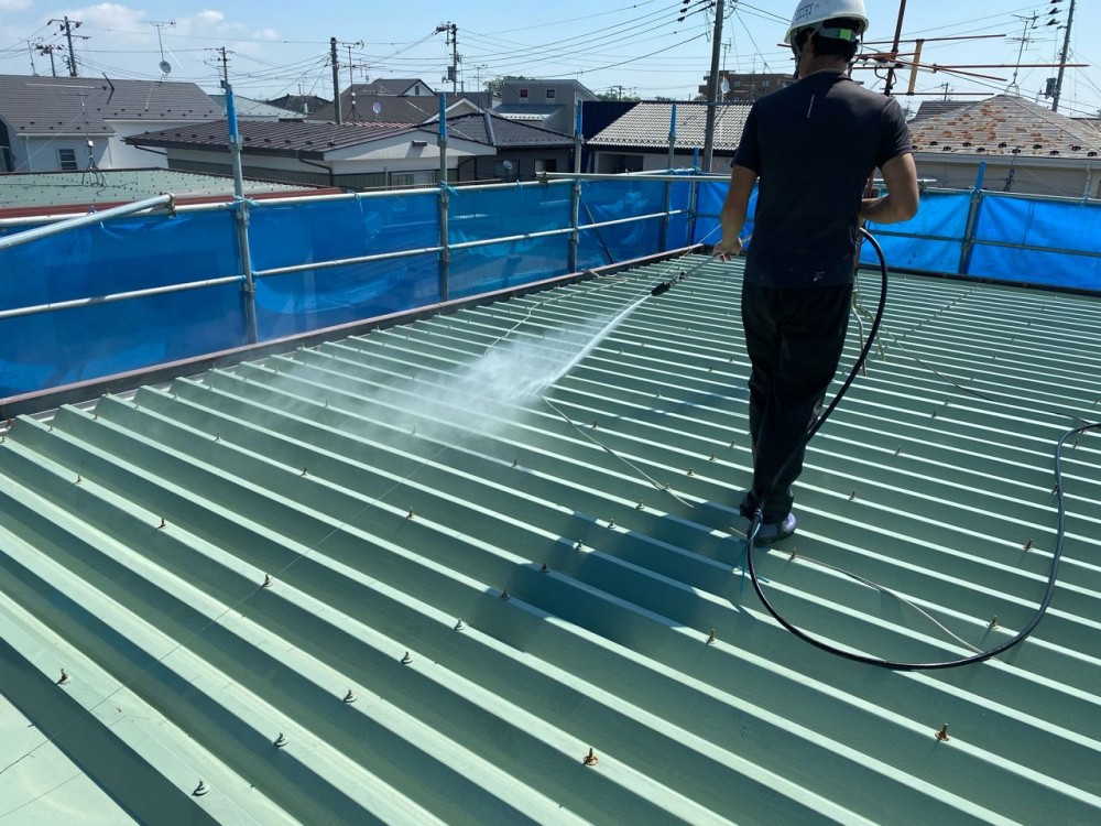 8/18~8/24 足場架設 高圧洗浄 屋根塗装下塗り 各所塗装