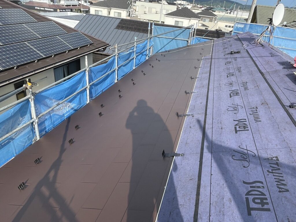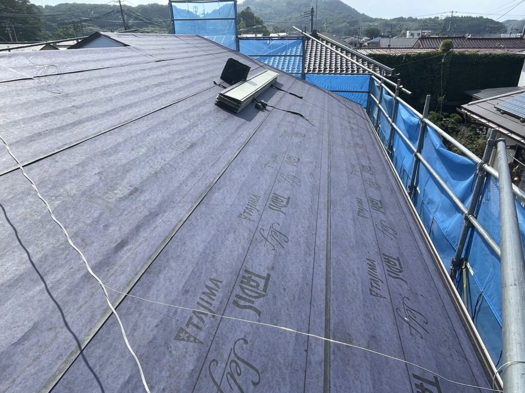 ルーフィング(防水シート)を新しく敷き、