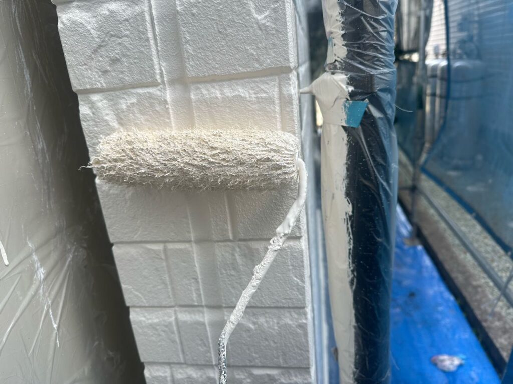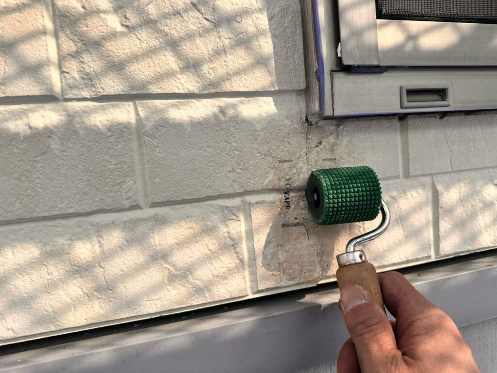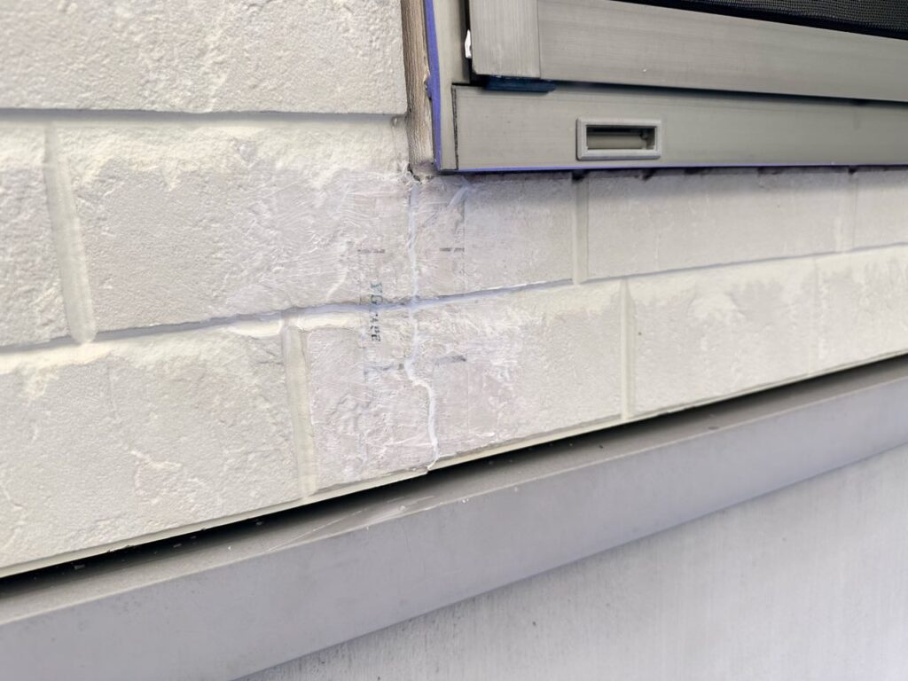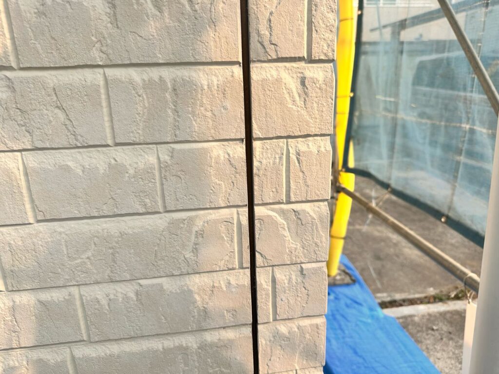 外壁も経年による色褪せが見られました。塗装前に行ったのは目地やサッシ廻りのシーリング処理。建物の動きに追従し、塗膜の耐久性を高めるために欠かせない工程です。