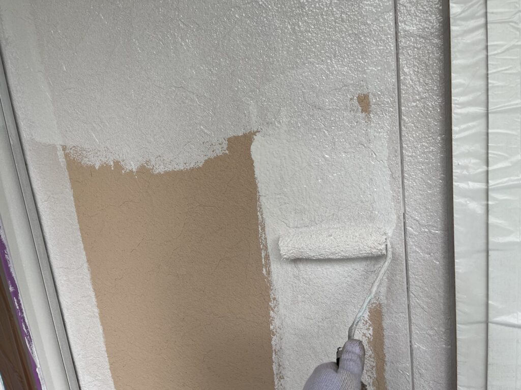 外壁の塗装は20年耐久の無機塗料を使用し、下塗り・中塗り・上塗りの3工程で施工。