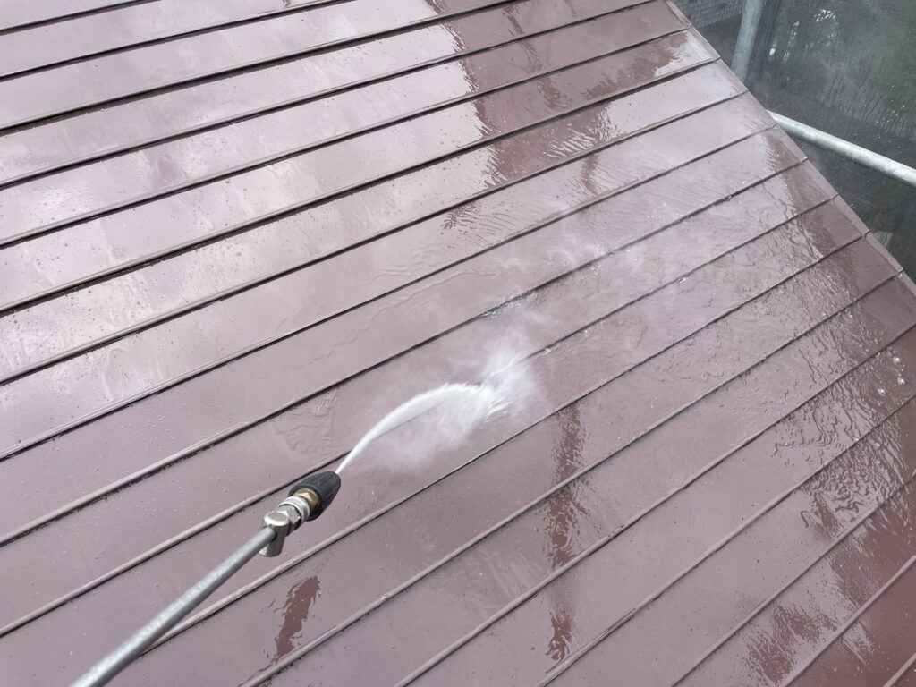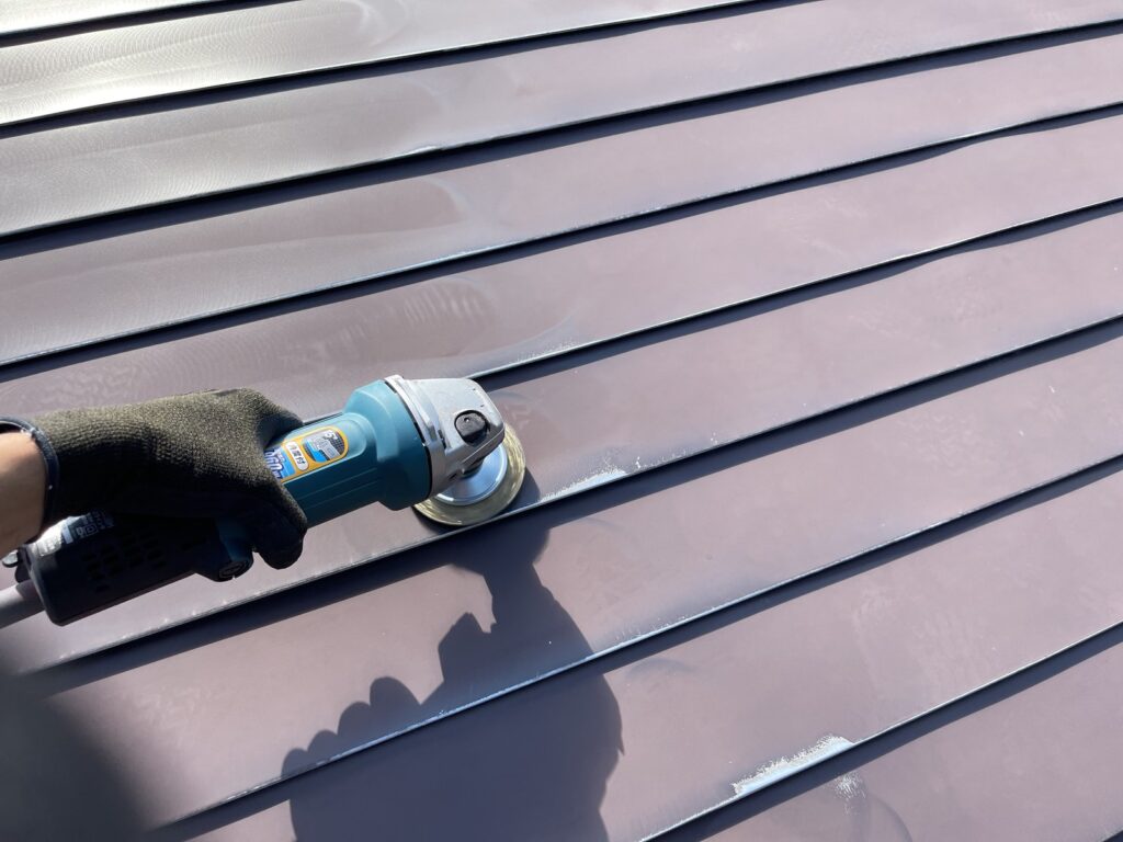 屋根材と塗料の密着を高めるために、下地のケレン処理を行います。