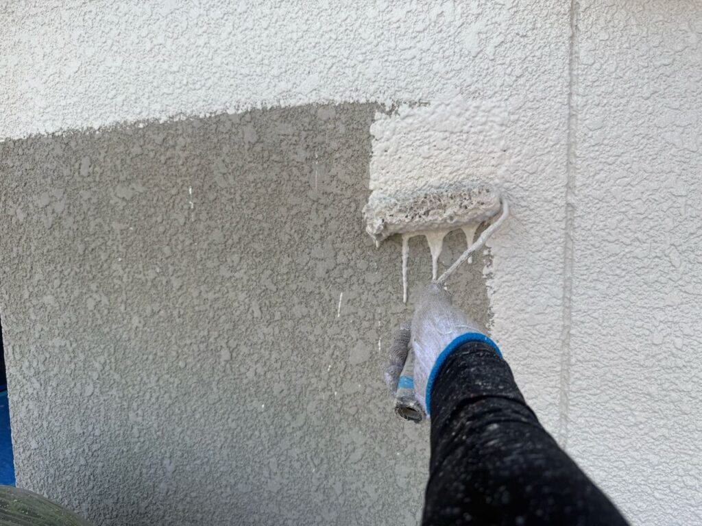 高圧洗浄後に下塗り→中塗り→上塗り+もう1層、合計4回塗りで仕上げました!