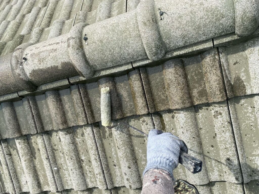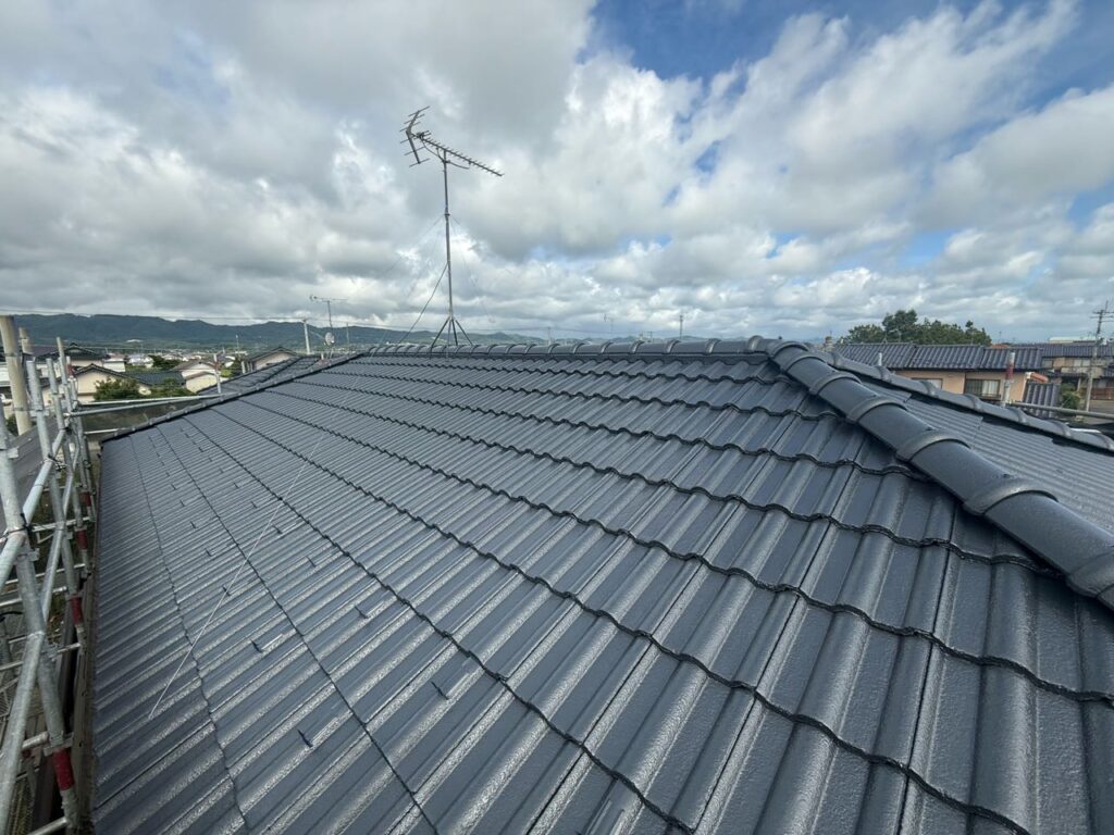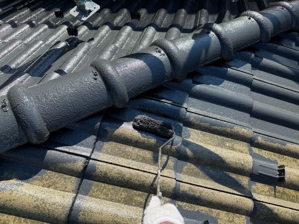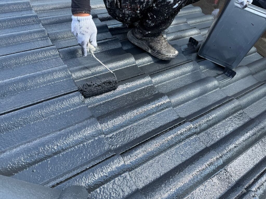 塗料は水谷ペイント「パワーシリコンマイルド」。撥水性・耐候性に優れていて、雨や紫外線から屋根をしっかり守ってくれます☀️