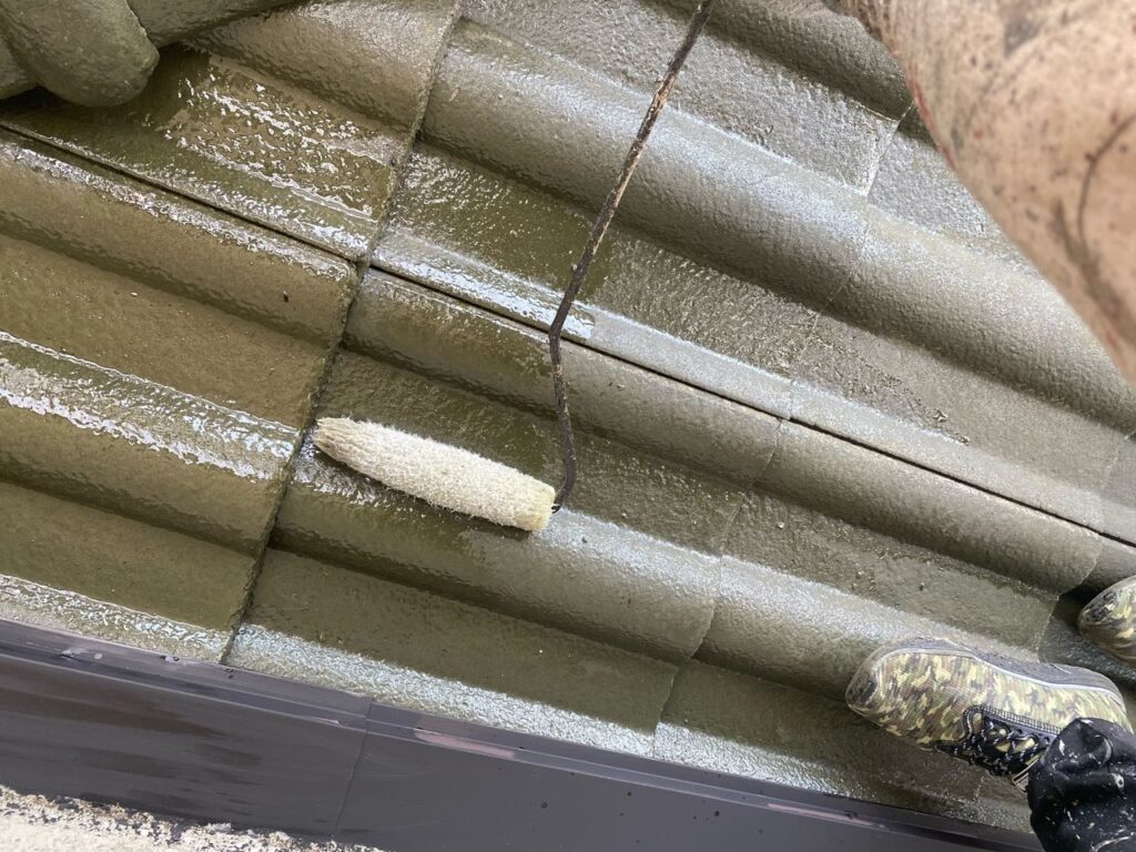 塗料は水谷ペイント「パワーシリコンマイルド」。撥水性・耐候性に優れていて、雨や紫外線から屋根をしっかり守ってくれます☀️