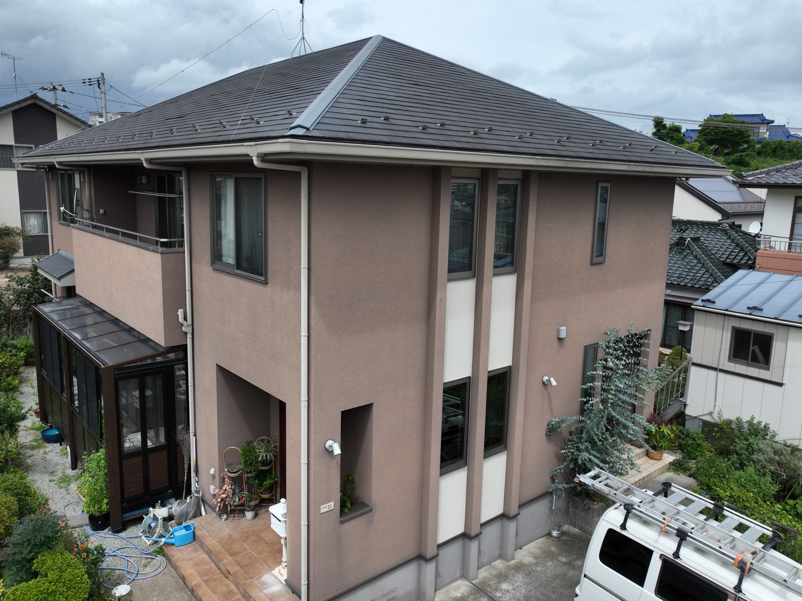 知り合いの設備業者さんにアンテナ交換をお願いしたところ、「屋根の一部が欠けているよ」と指摘を受けたF様。紹介を受けて宍戸ペイントサービスにご相談いただきました。屋根の状態が気になるとのことで、外壁もあわせて長持ちする施工をご希望でした。
