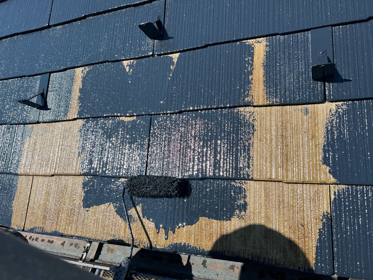 屋根は下塗り3回中塗り、上塗り5回塗で仕上げました。