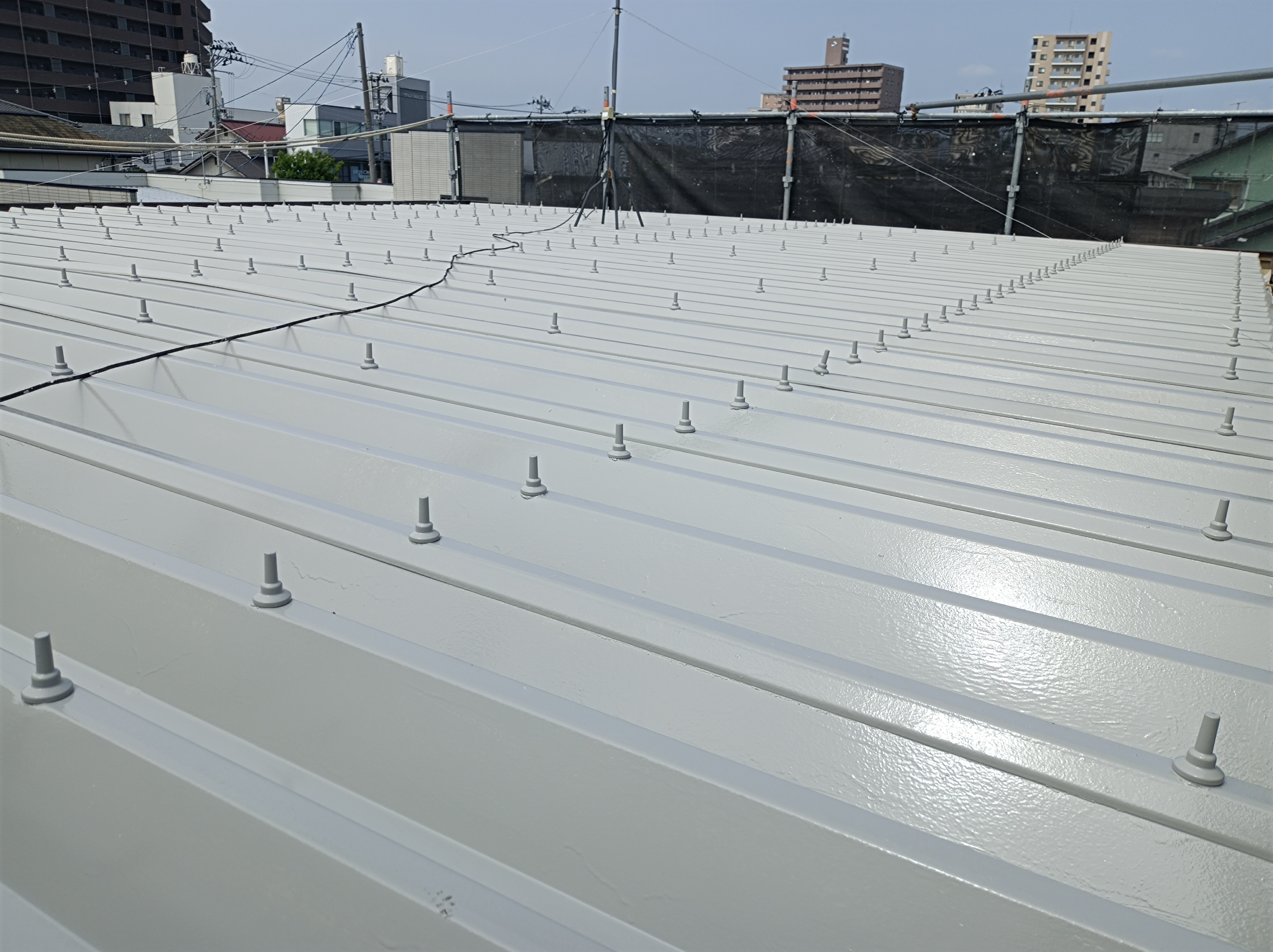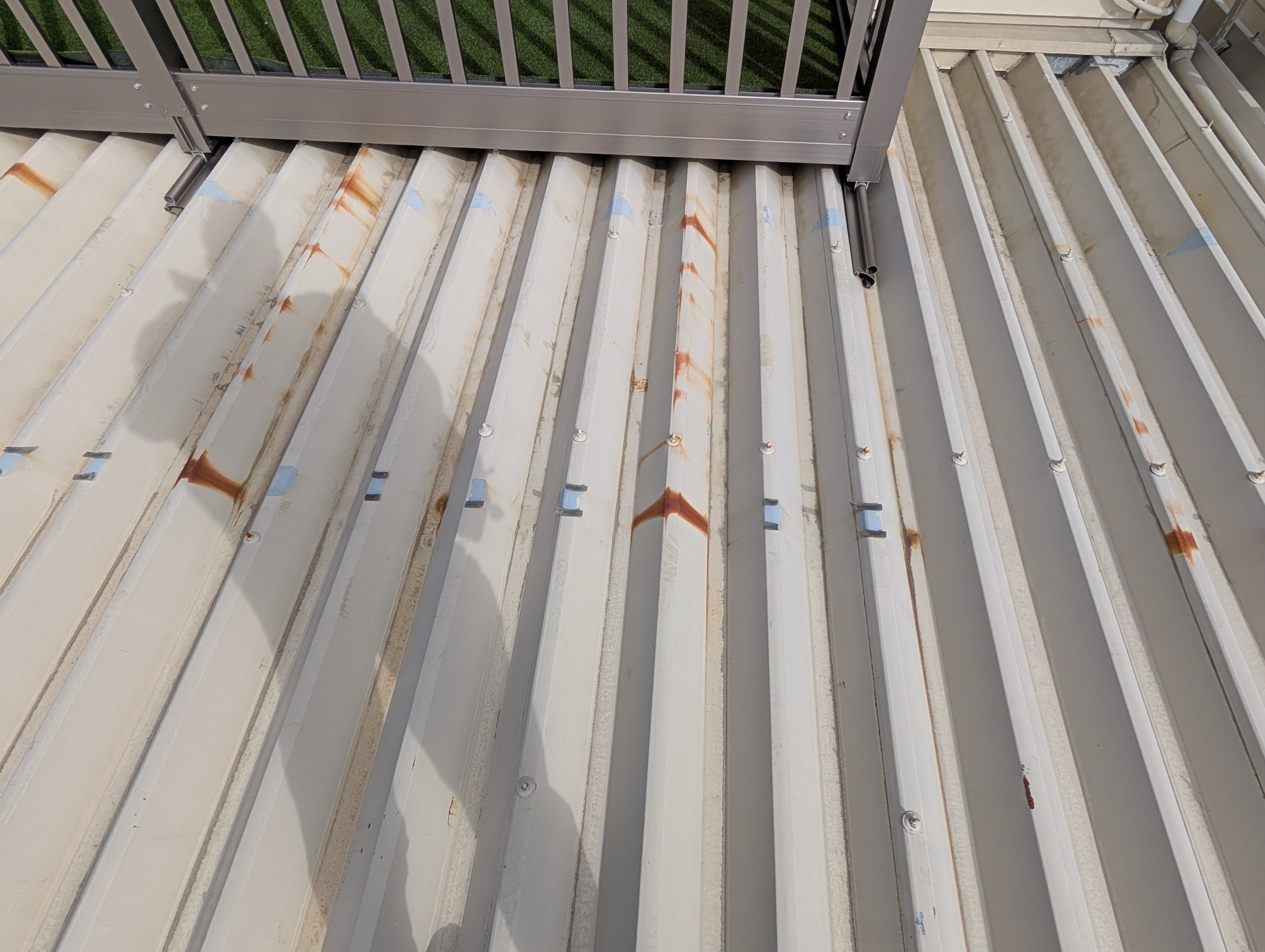 屋根には錆が広範囲に見られましたので、まずはケレン作業で錆を丁寧に除去。その後、錆止めをしっかり塗布してから中塗り・上塗りの3回塗りで仕上げました。