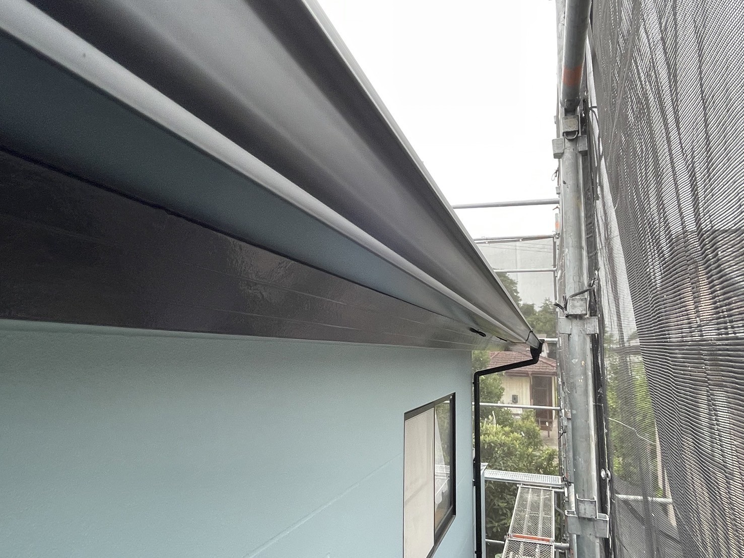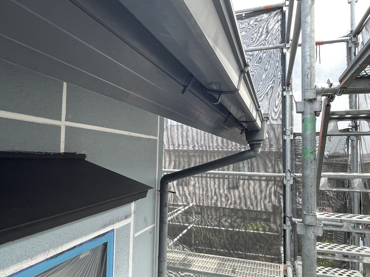 さらに、雨樋は経年劣化による歪みが見られたため、Panasonic製PC50角樋に交換。