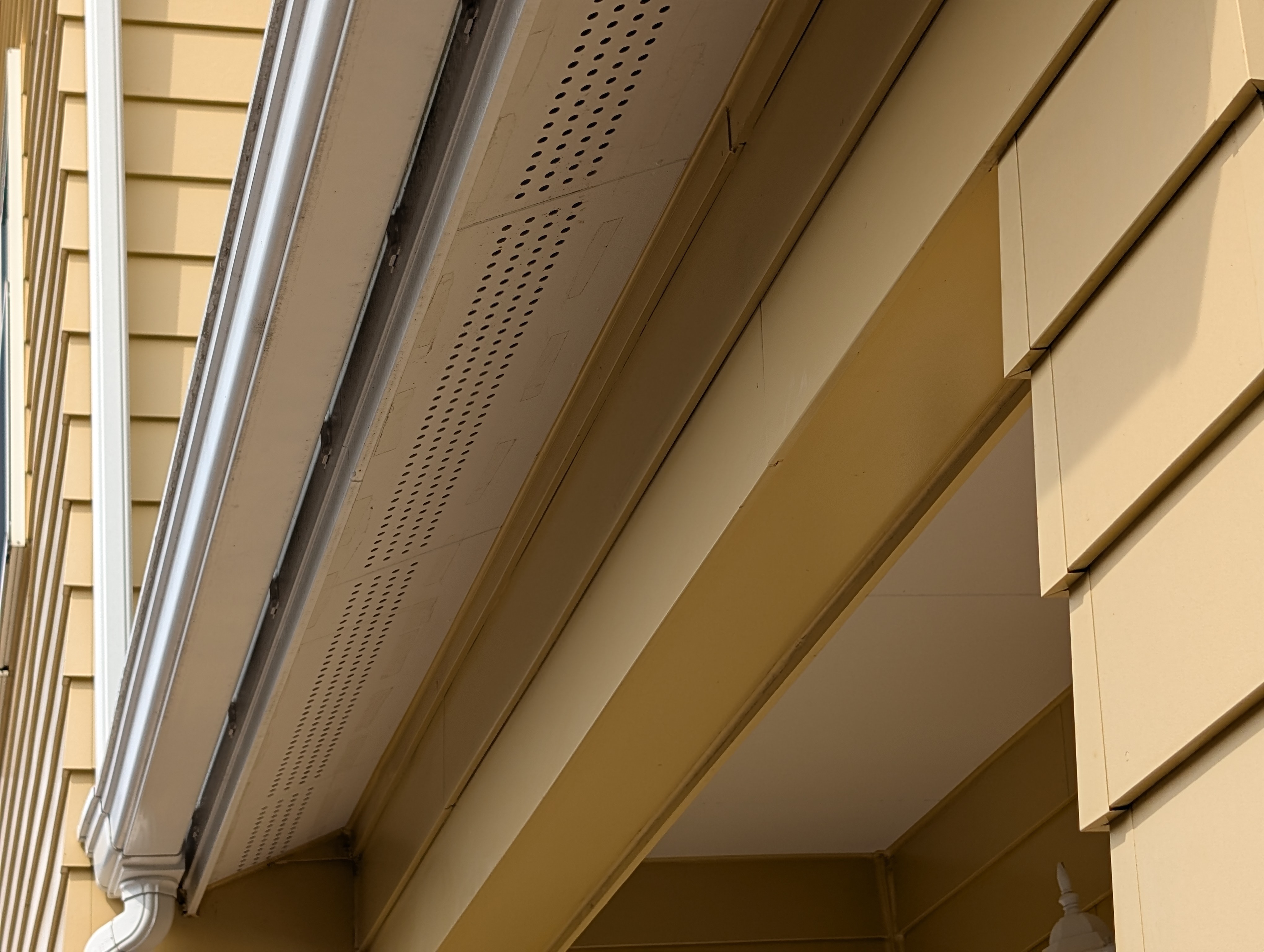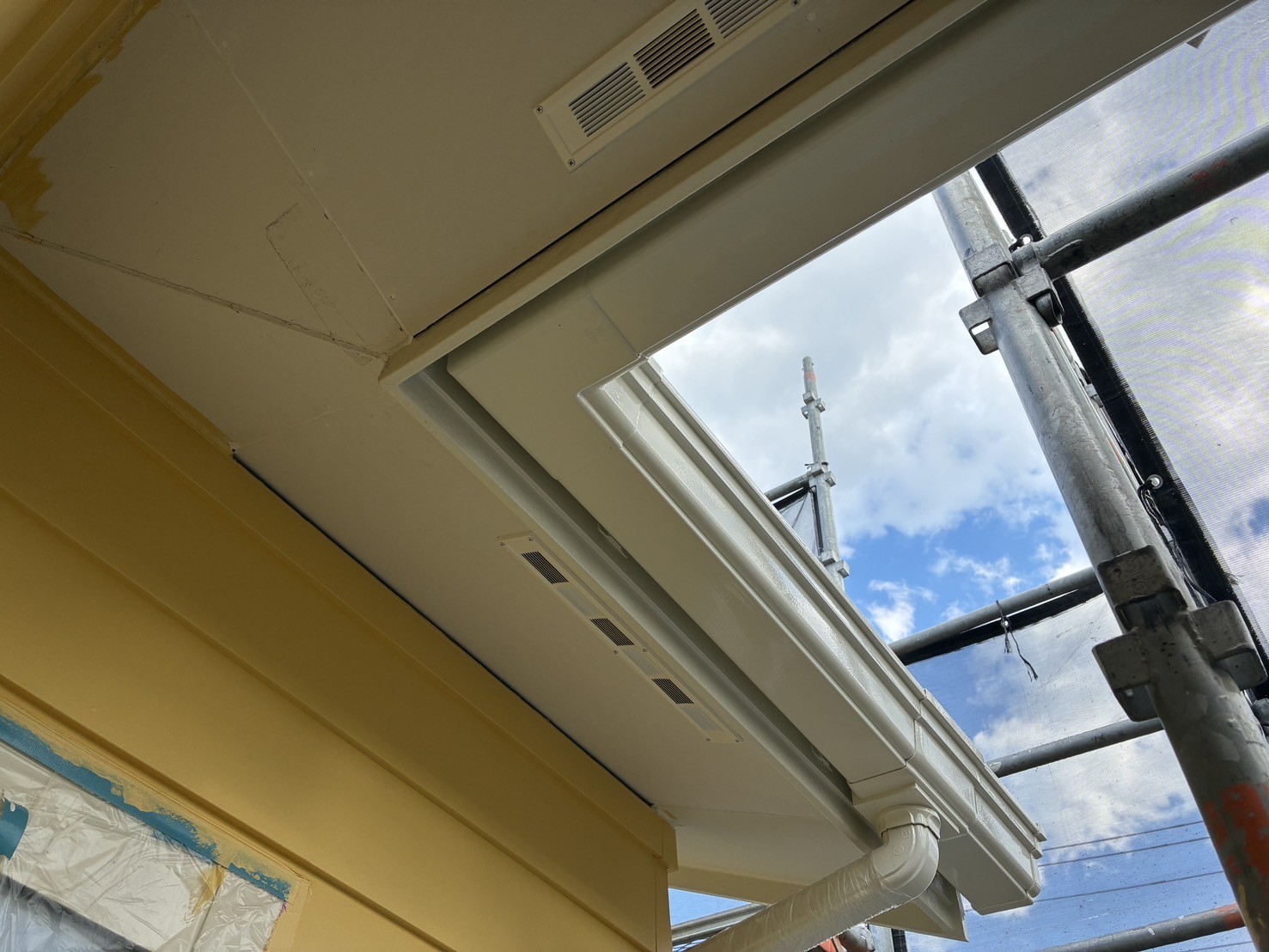 軒天の通気口にからハチが入っていたため部分的に軒天を張り替えて通気口が小さいタイプのものにしました。