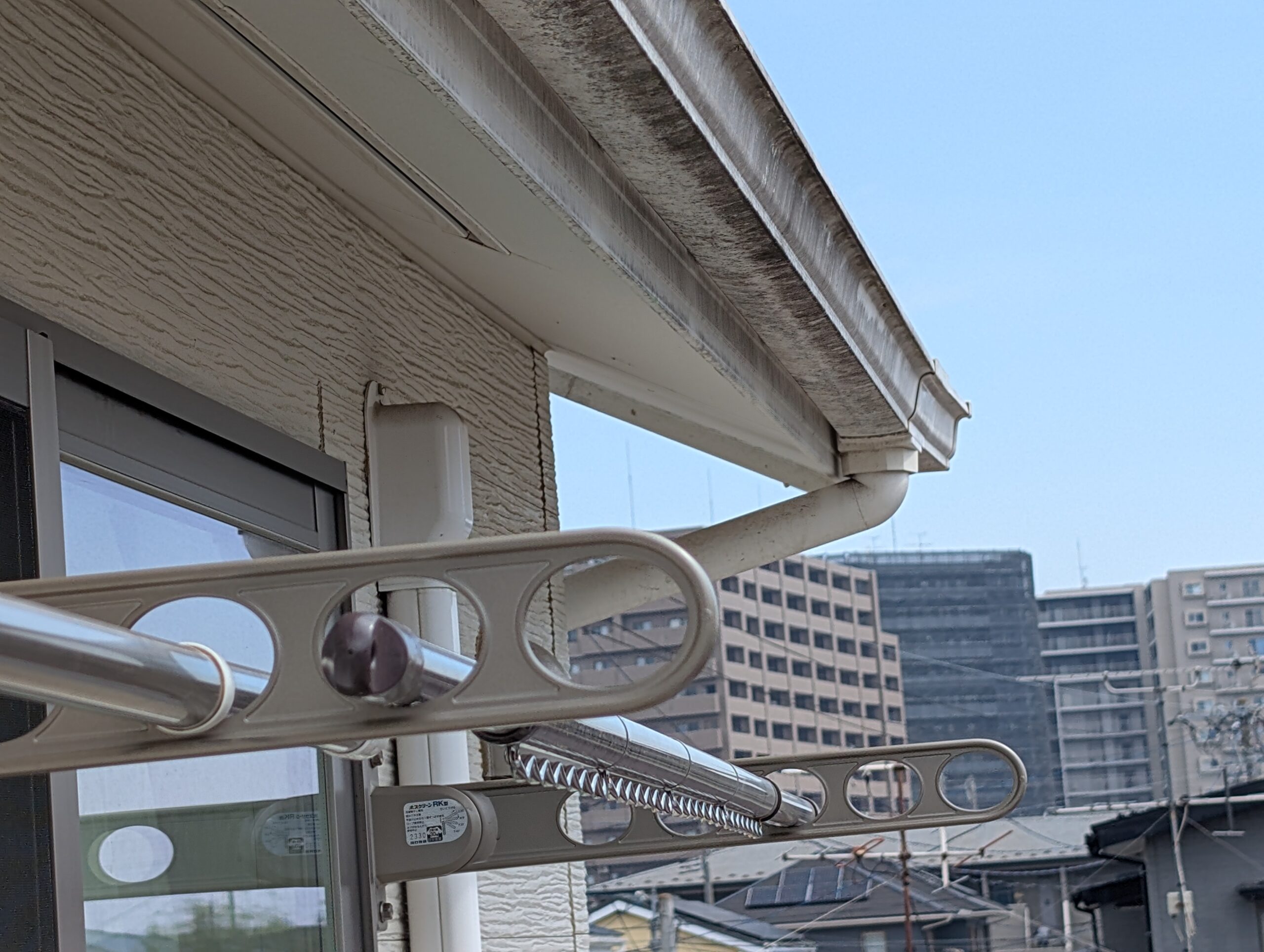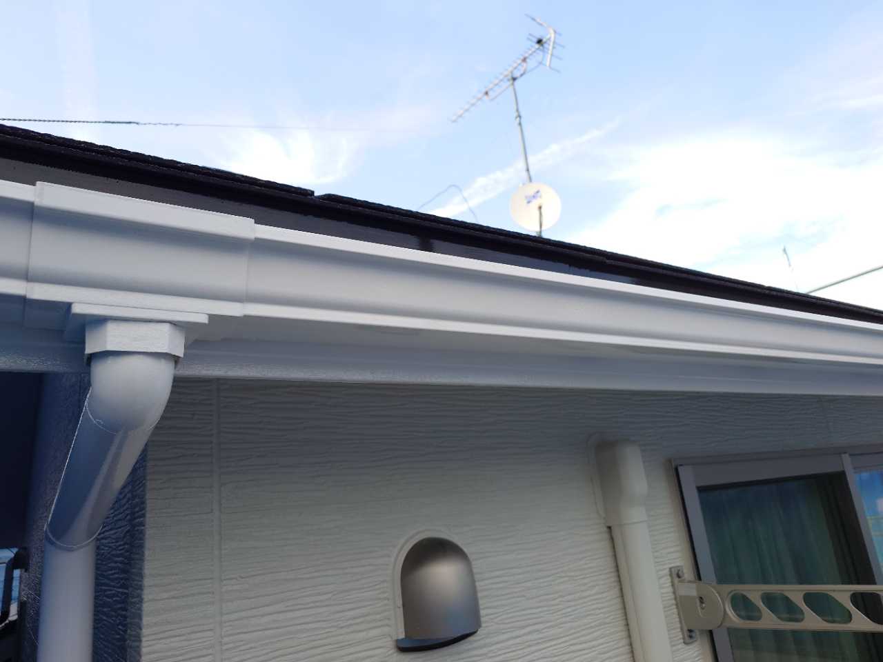 塗装前は雨樋が汚れていました。洗浄で汚れを落として雨樋・破風も無機塗料仕上げです✨