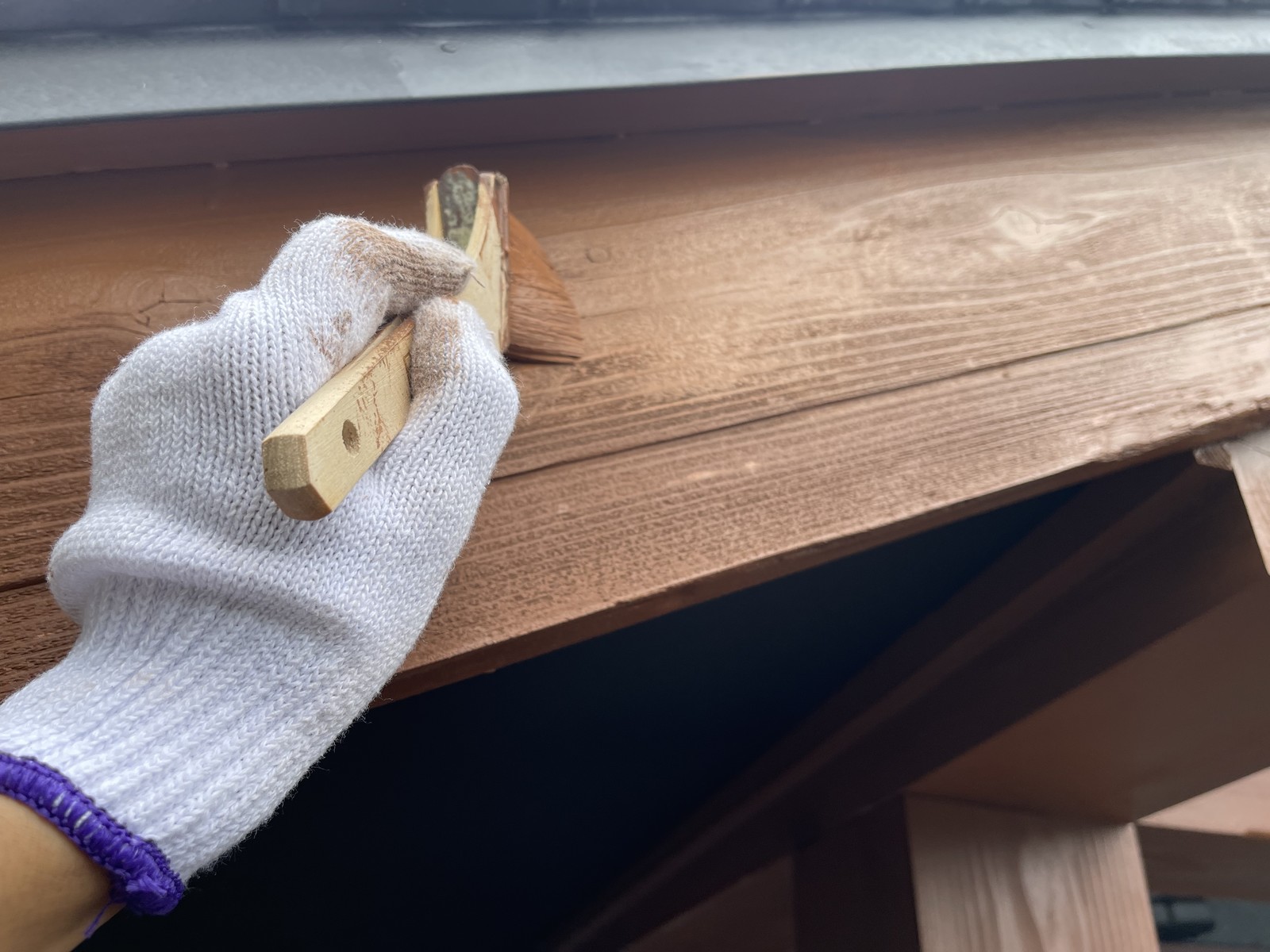 K様邸は木部が多く使用されており、まずは下地処理を丁寧に行うことが重要でした。