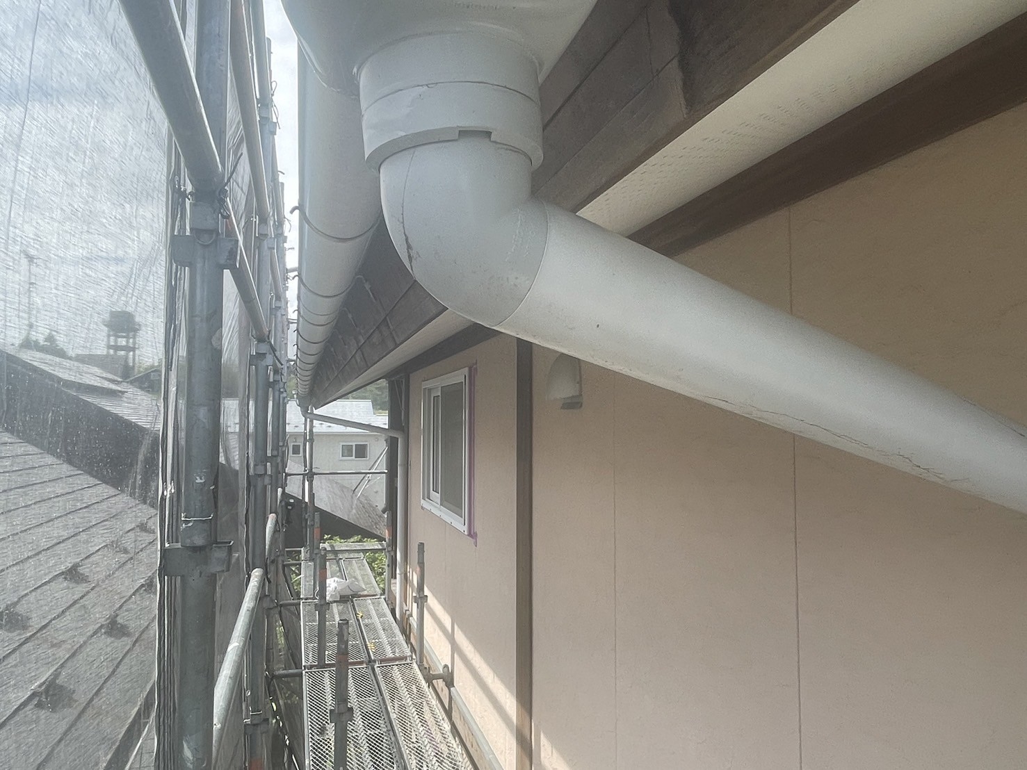 雨樋は従来の半丸樋から、積雪地域向けの「PC50角樋」に交換。水の流れを改善し、機能性・デザイン性ともにアップしました。